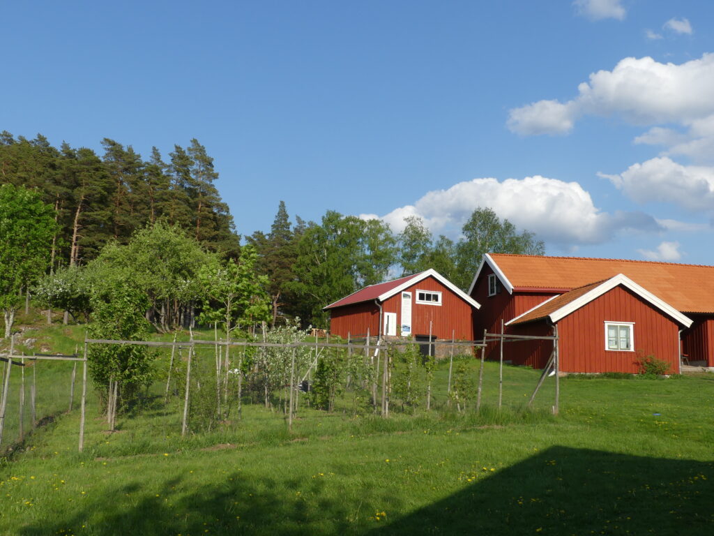 Boningshuset, bryggstugan och ladugården ligger samlade på en ås med en skyddande trädbeklädd höjd bakom. Till vänster om ladugården ligger en jordkällare med en torvlada ovanpå. Vid gödselstacken (som nu saknas) ligger även gårdens avträde (utedass). Där bakom ladugården finns även vedförråden.