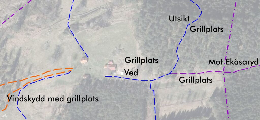 Det finns fyra grillplatser uppe på Dammsjöås. Vilken som är bäst beror mycket på vädret. Det finns en grillplats uppe bakom ladugården och en nära stigen mot öster. Den största grillplatsen ligger mellan de två vindskydden i den stora hagen i väster. Vid kalla nordanvindar men god sol är grillplatsen vid myrodlingen ett bra val.Den nyaste finns uppe vid utsiktsplatsen. Uppe vid vindskydden finns ved på plats och till de andra tre får man hämta ved i vedskjulet. Det är klädsamt att swisha en lämplig summa till Dammsjöåskommittén. Swisha på nummer 123 344 3132 och märk betalningen med ”Dammsjöås”.